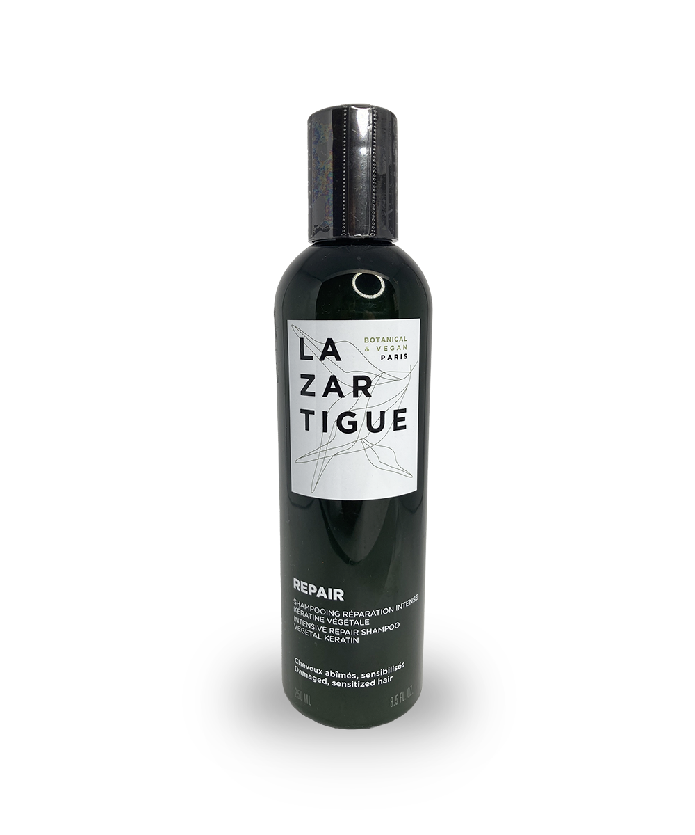 Shampoo de reparación intensa enriquecido con queratina vegetal, repara los daños capilares profundos y reestructura la fibra capilar dañada por el uso de herramientas térmicas y/o decolorantes. Deja un cabello fuerte y sedoso hasta las puntas.